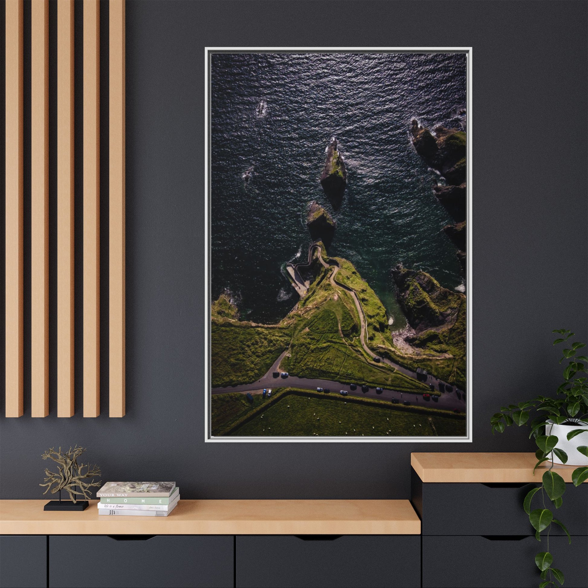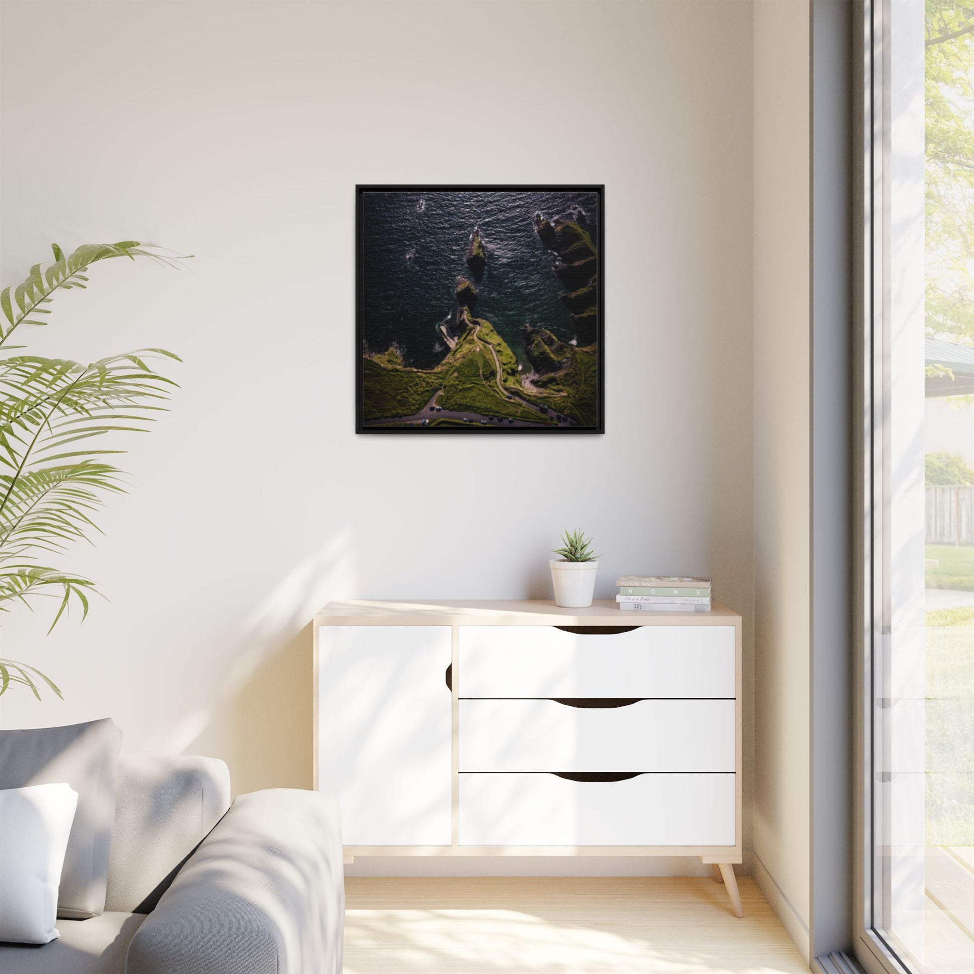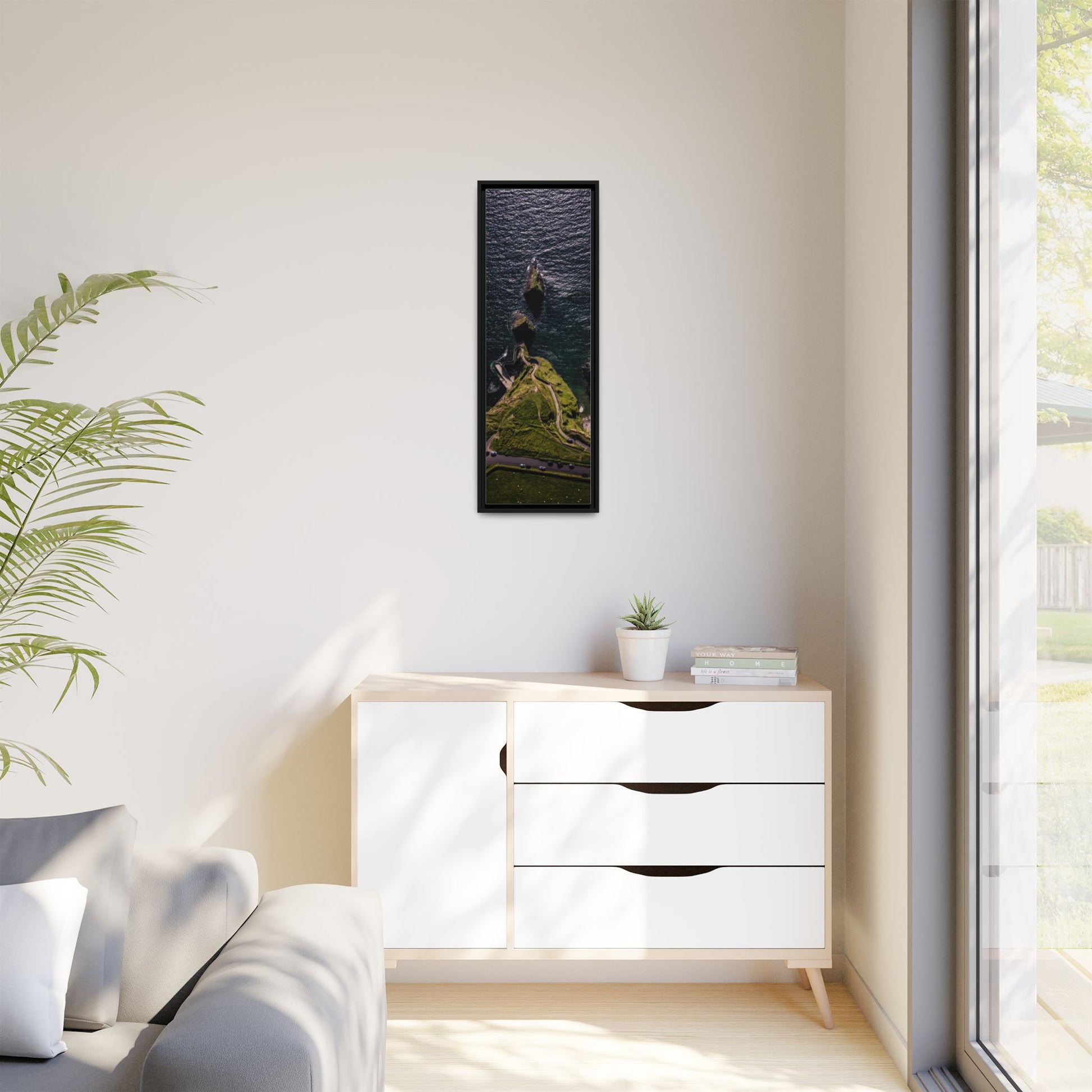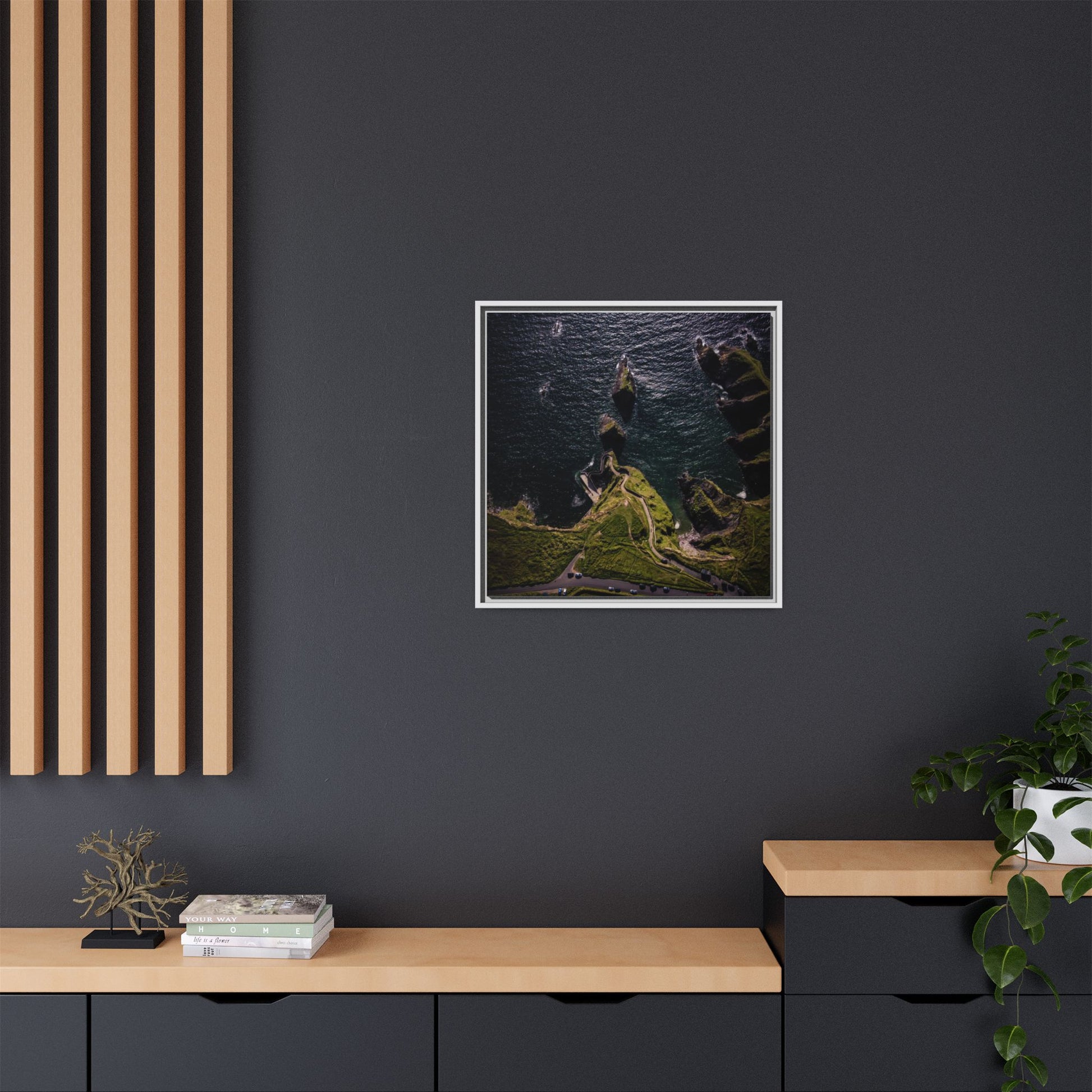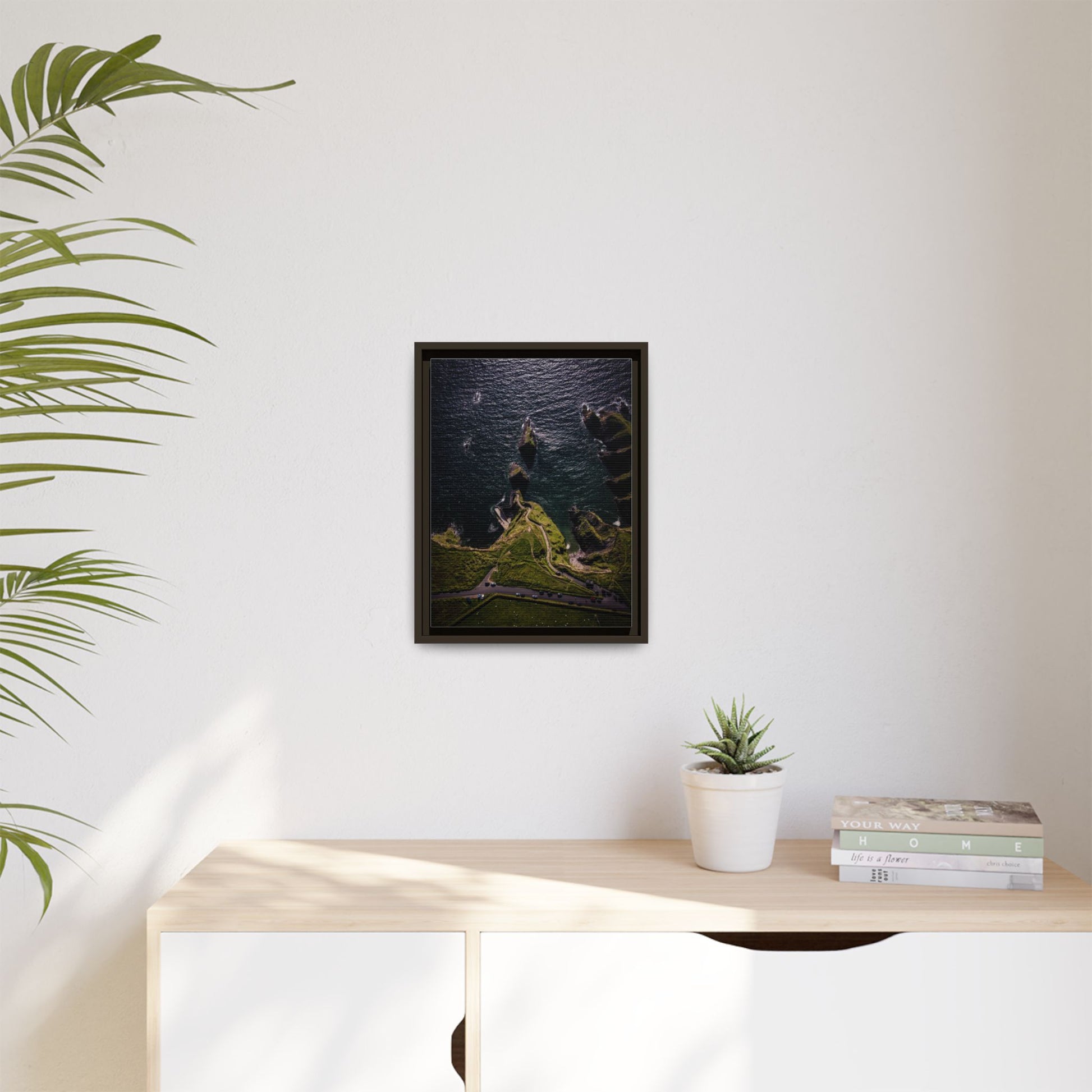 Enhance any interior space with beautiful art framed in a pinewood frame. Printed on a cotton-polyester canvas with a special proprietary coating to ensure long-lasting, vibrant colors and eye-catching detail. Made with sustainably sourced materials (Forest Stewardship Council certified), these frames are an eco-friendly choice. Choose between multiple sizes, and between 3 colors that matches your surroundings. The sawtooth hanging hardware is already attached.