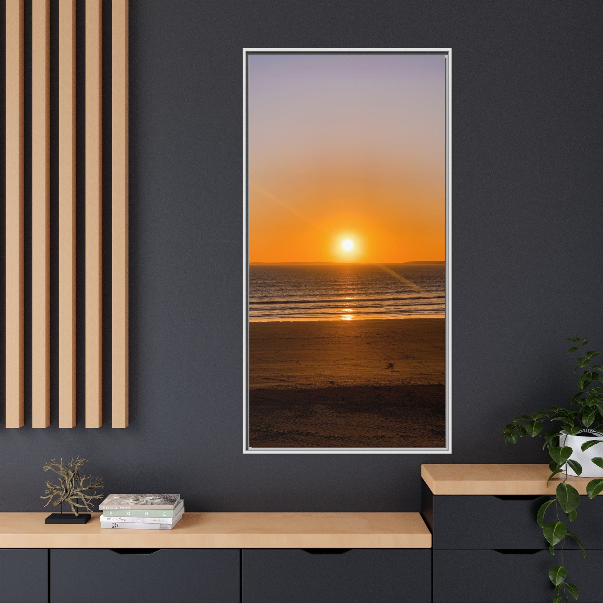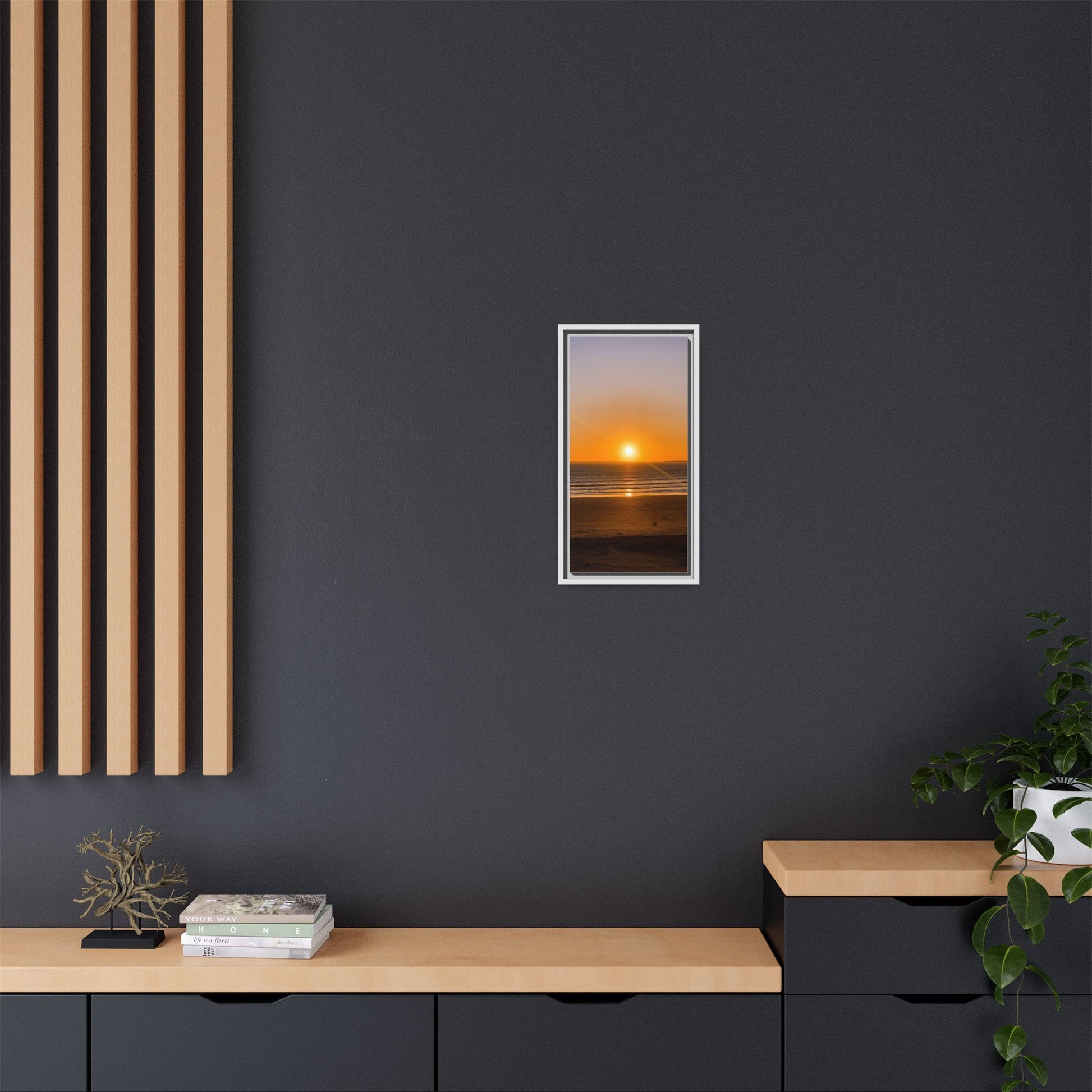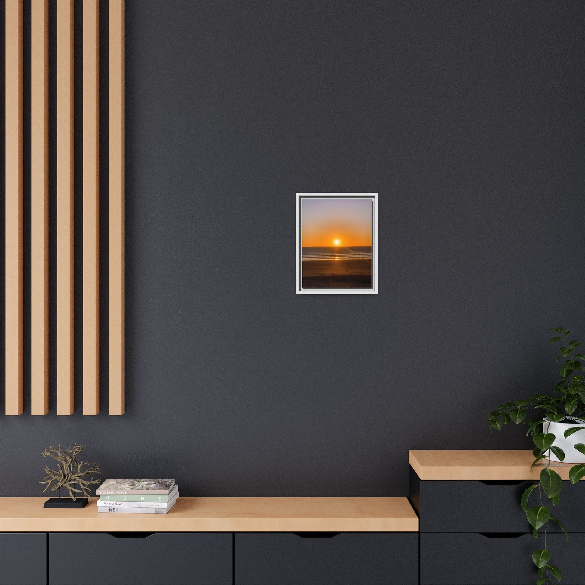 Enhance any interior space with beautiful art framed in a pinewood frame. Printed on a cotton-polyester canvas with a special proprietary coating to ensure long-lasting, vibrant colors and eye-catching detail. Made with sustainably sourced materials (Forest Stewardship Council certified), these frames are an eco-friendly choice. Choose between multiple sizes, and between 3 colors that matches your surroundings. The sawtooth hanging hardware is already attached.