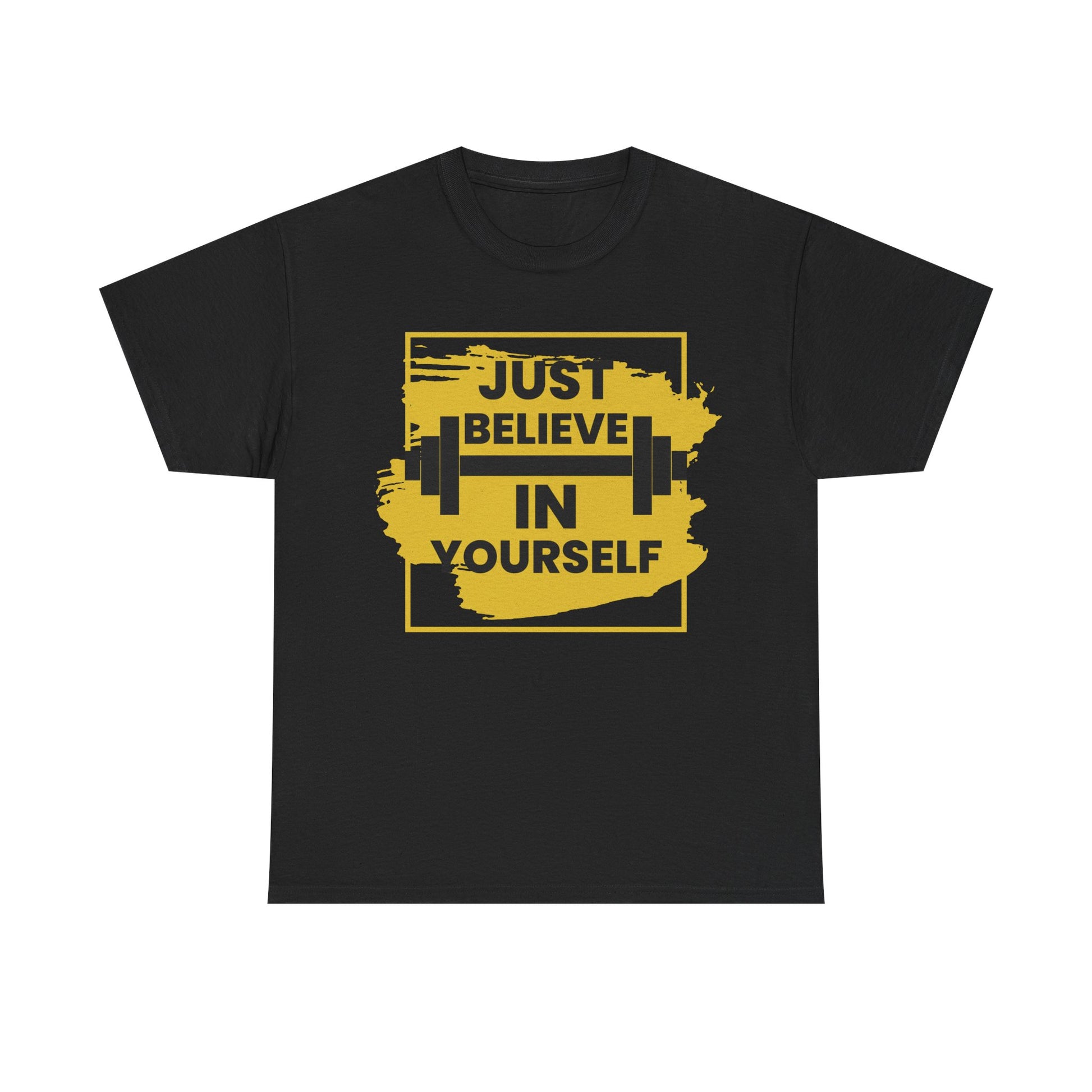 Introducing the perfect Unisex Heavy Cotton Tee that effortlessly blends comfort, style, and motivation. Featuring a bold design, this tee inspires a can-do attitude with the phrase 'Just Believe In Yourself' set against a vibrant backdrop—ideal for anyone who loves fitness, self-improvement, or simply embracing positivity in life.