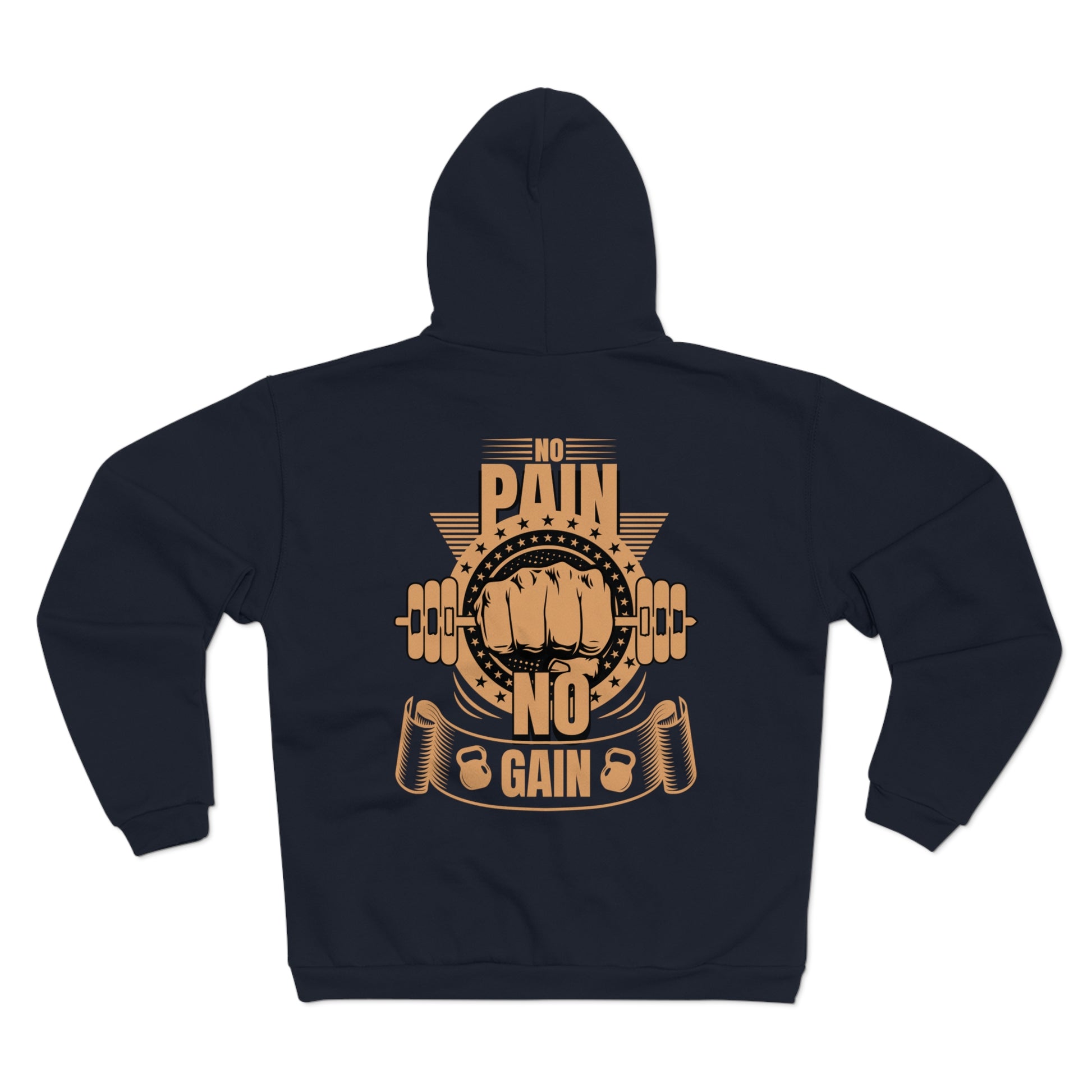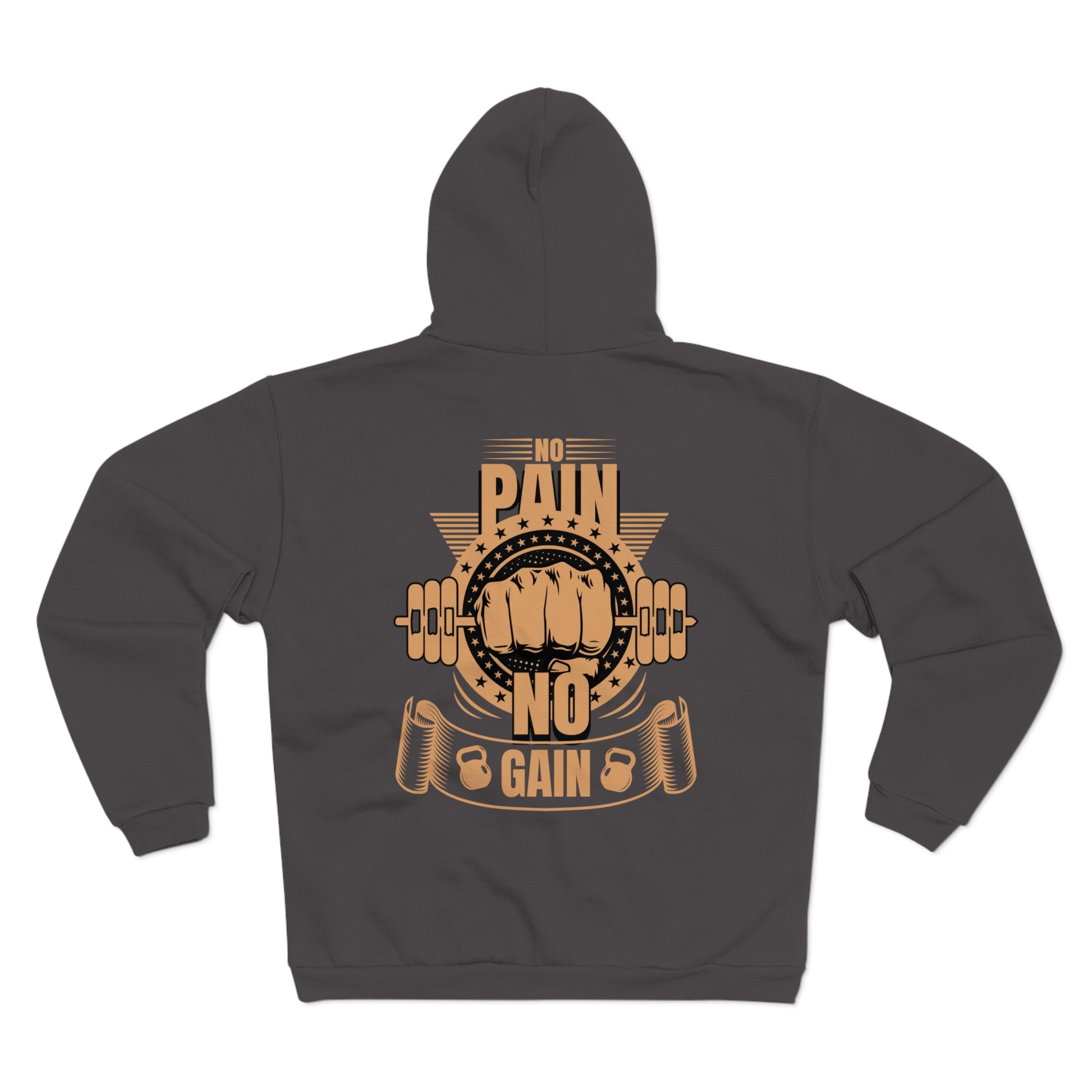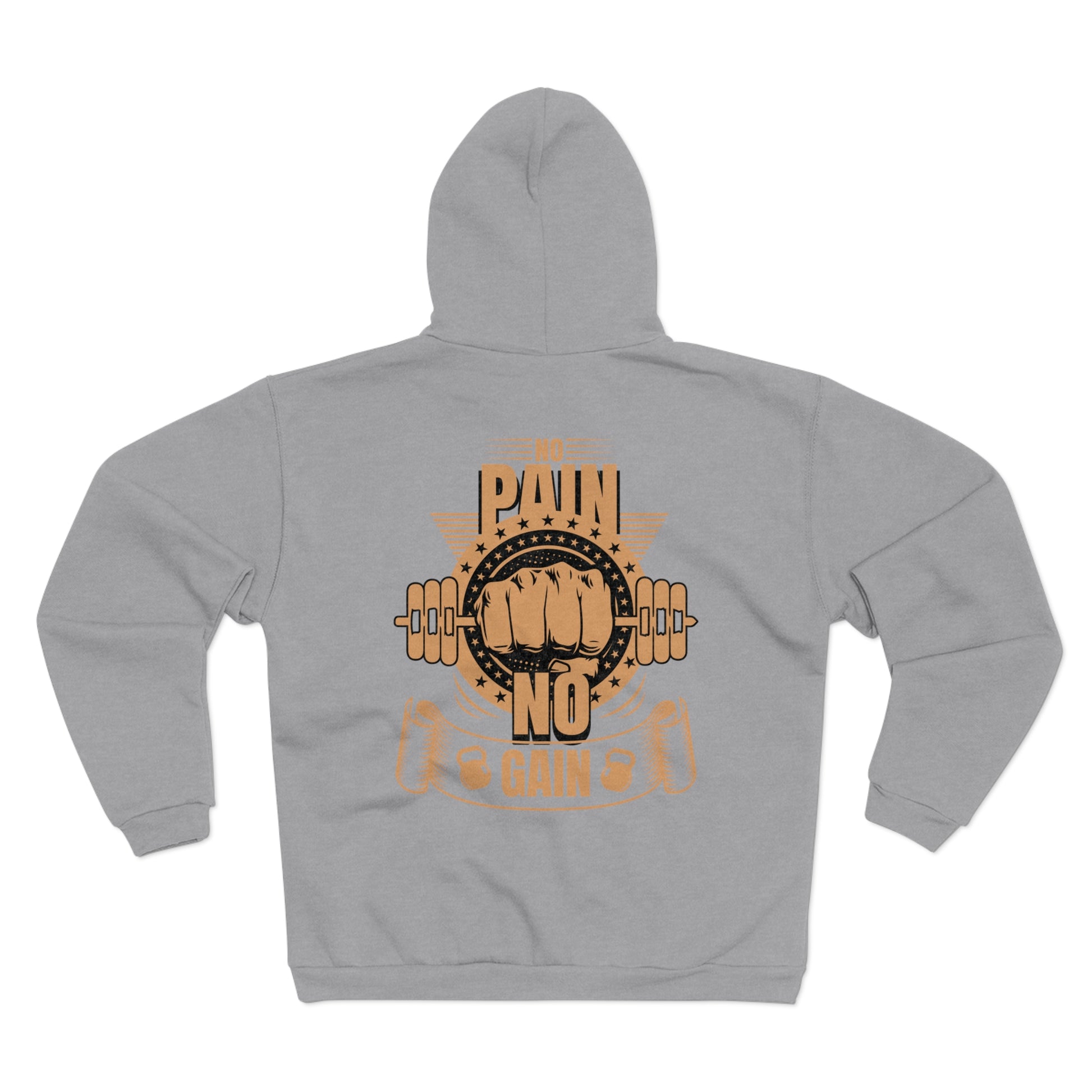Motivational "No Pain No Gain" Unisex Hooded Zip Sweatshirt - Perfect for Gym Enthusiasts