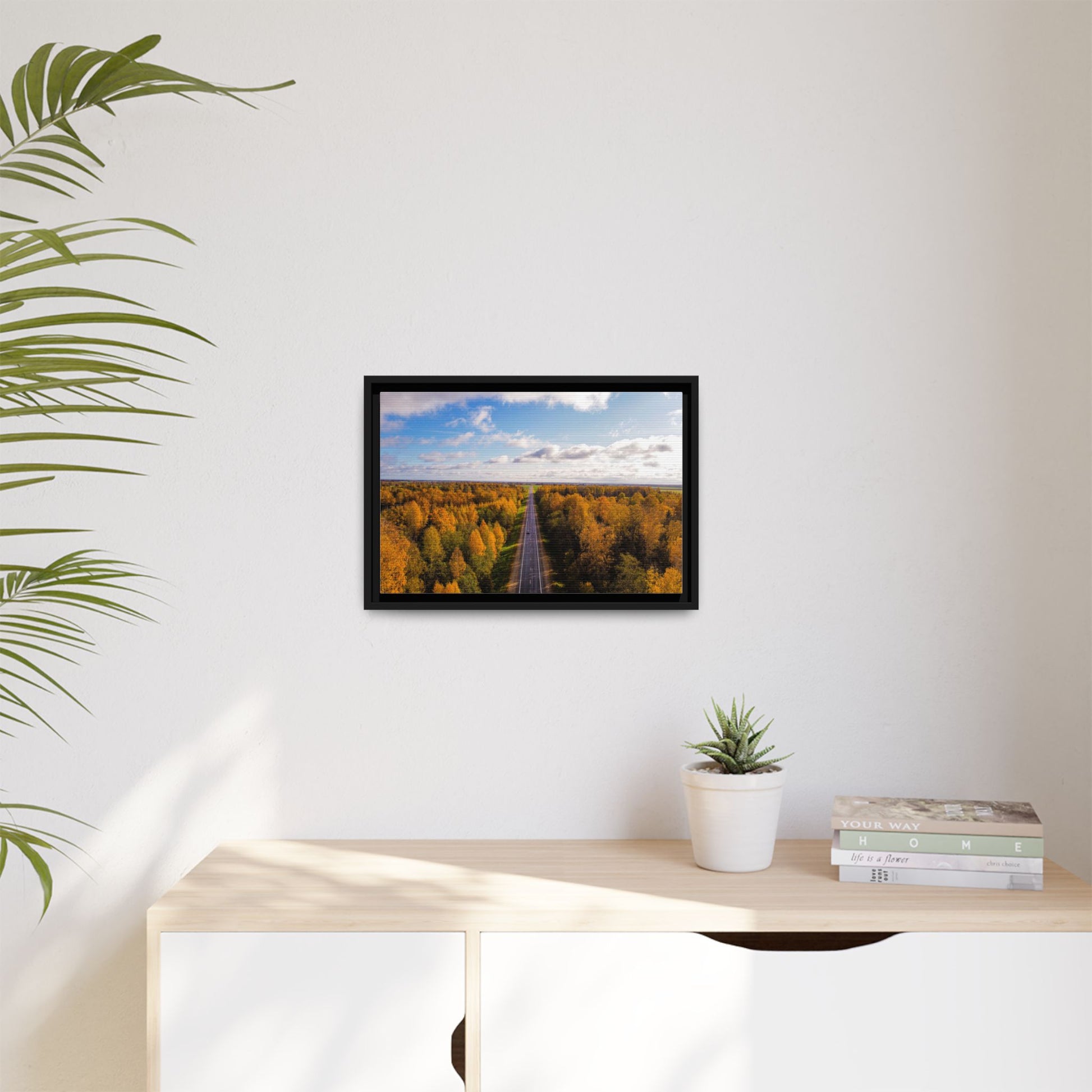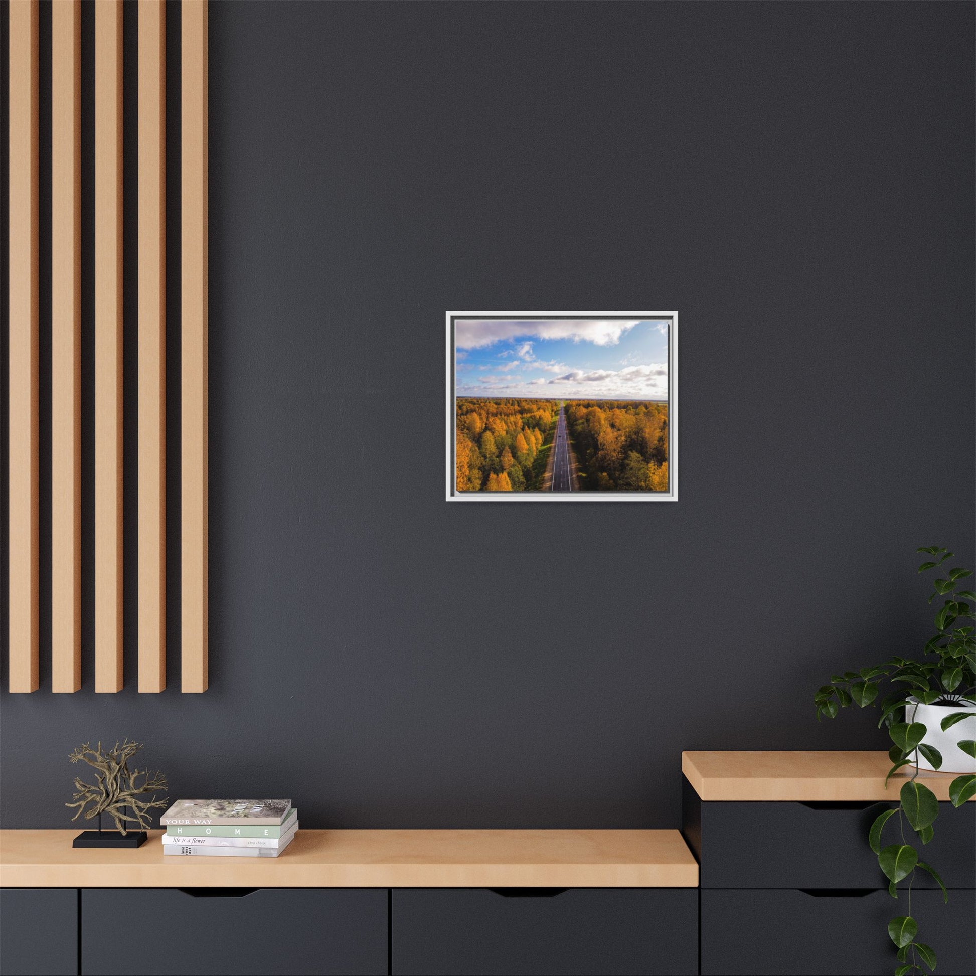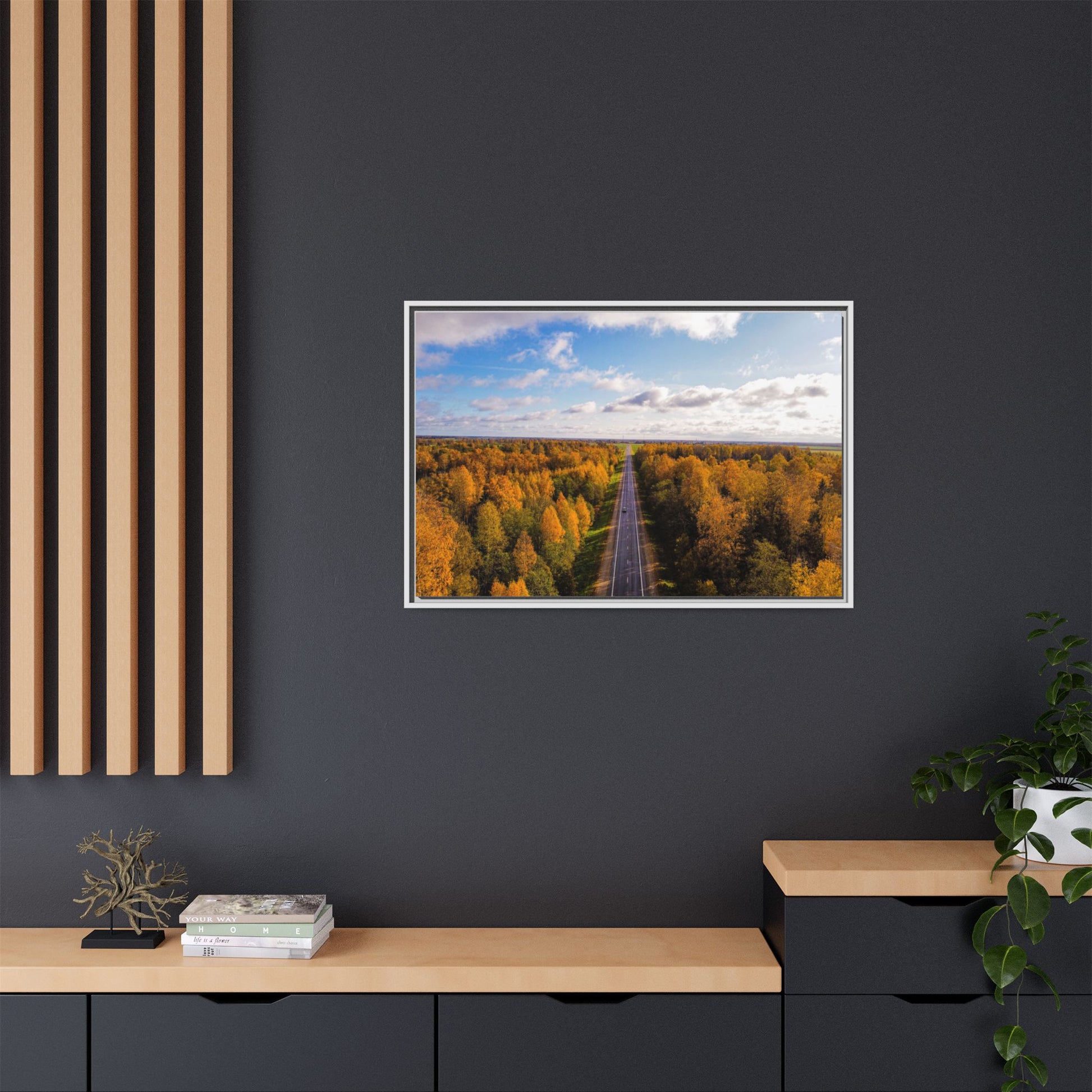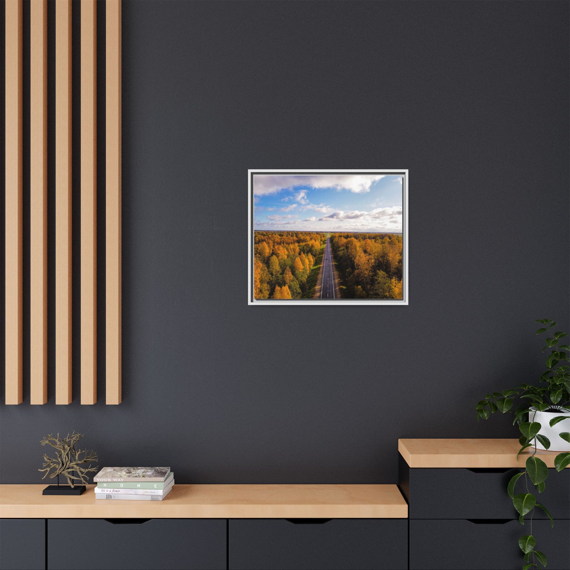 Enhance any interior space with beautiful art framed in a pinewood frame. Printed on a cotton-polyester canvas with a special proprietary coating to ensure long-lasting, vibrant colors and eye-catching detail. Made with sustainably sourced materials (Forest Stewardship Council certified), these frames are an eco-friendly choice. Choose between multiple sizes, and between 3 colors that matches your surroundings. The sawtooth hanging hardware is already attached.