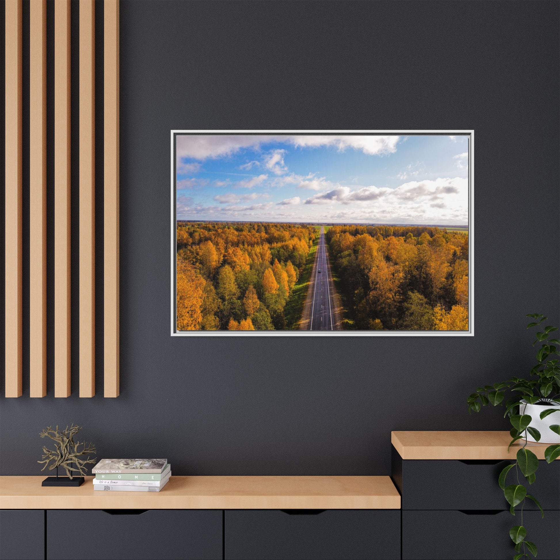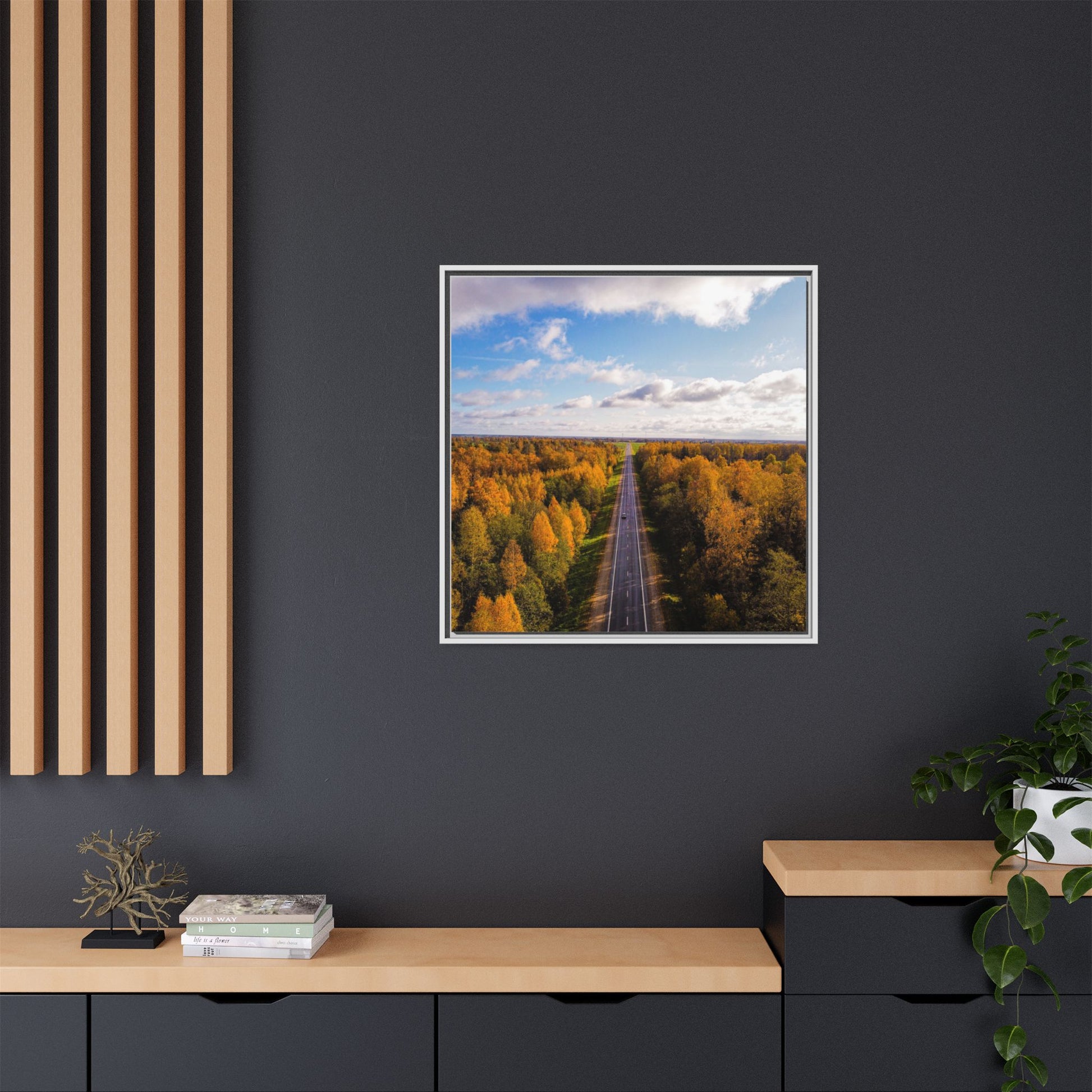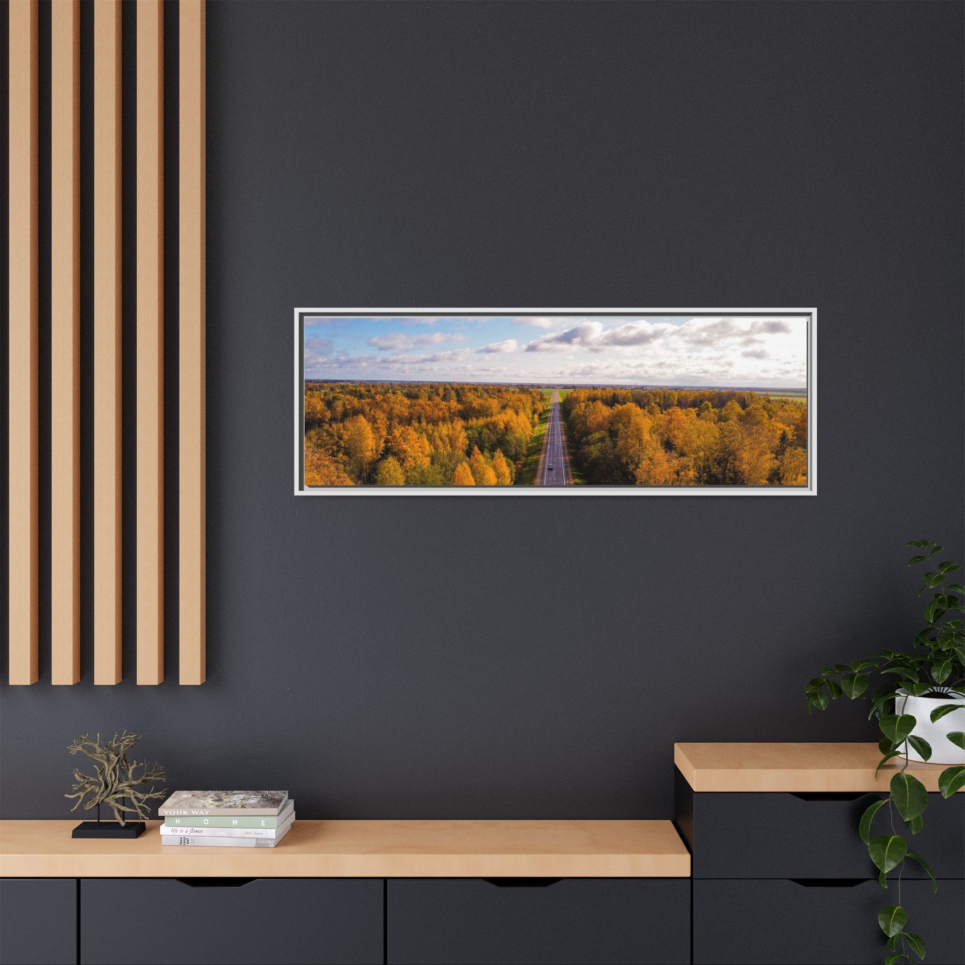 Enhance any interior space with beautiful art framed in a pinewood frame. Printed on a cotton-polyester canvas with a special proprietary coating to ensure long-lasting, vibrant colors and eye-catching detail. Made with sustainably sourced materials (Forest Stewardship Council certified), these frames are an eco-friendly choice. Choose between multiple sizes, and between 3 colors that matches your surroundings. The sawtooth hanging hardware is already attached.