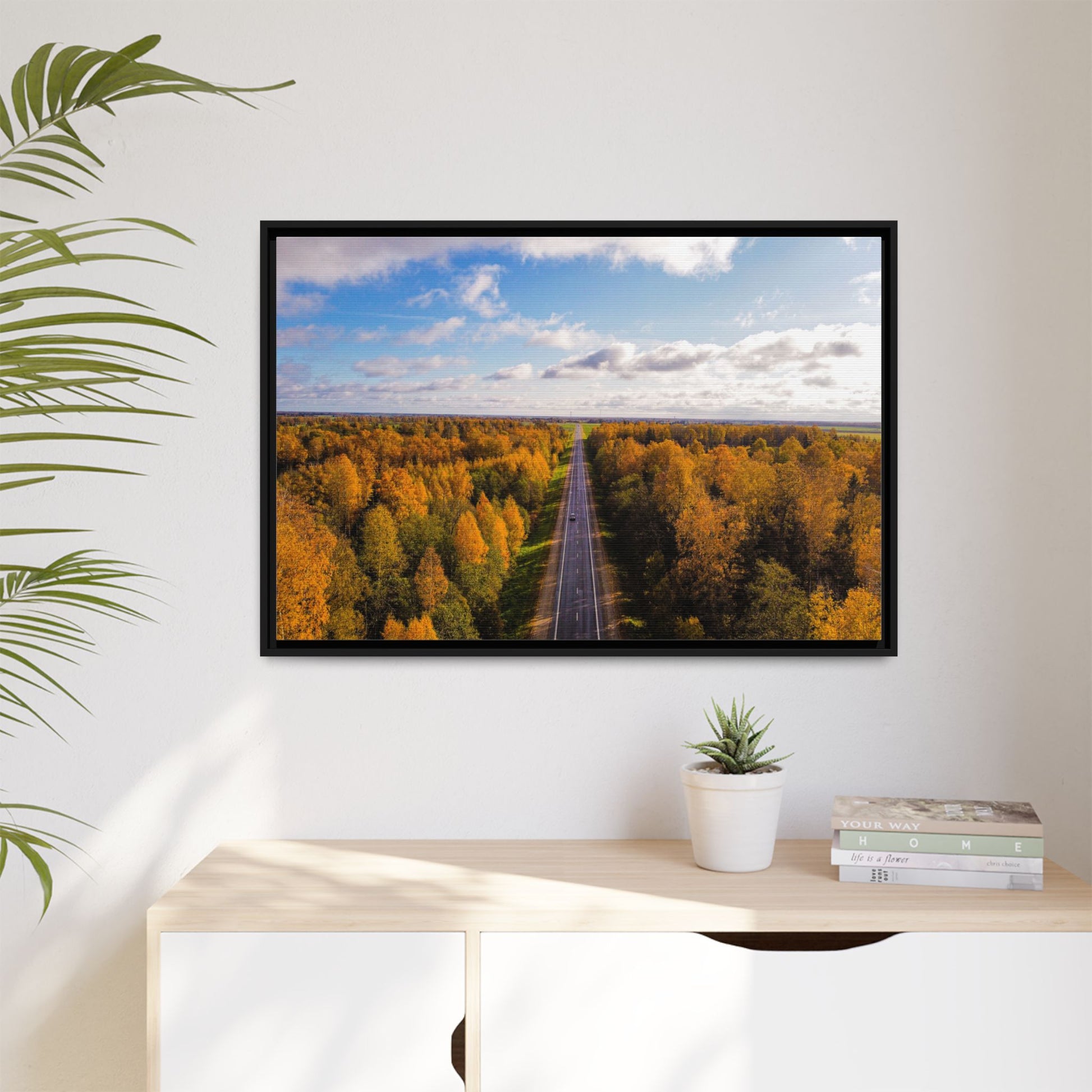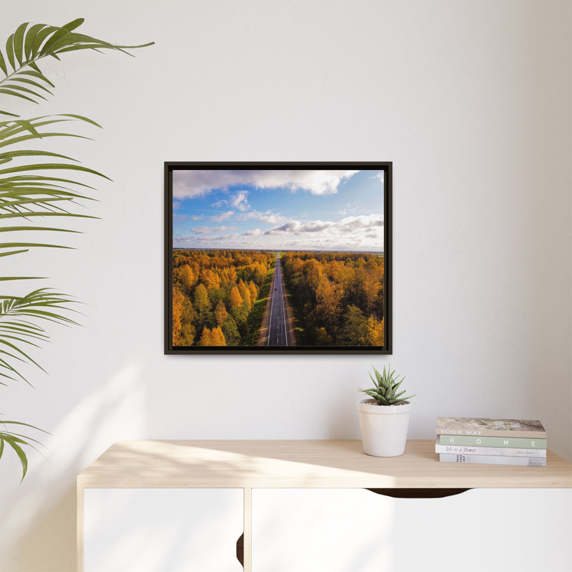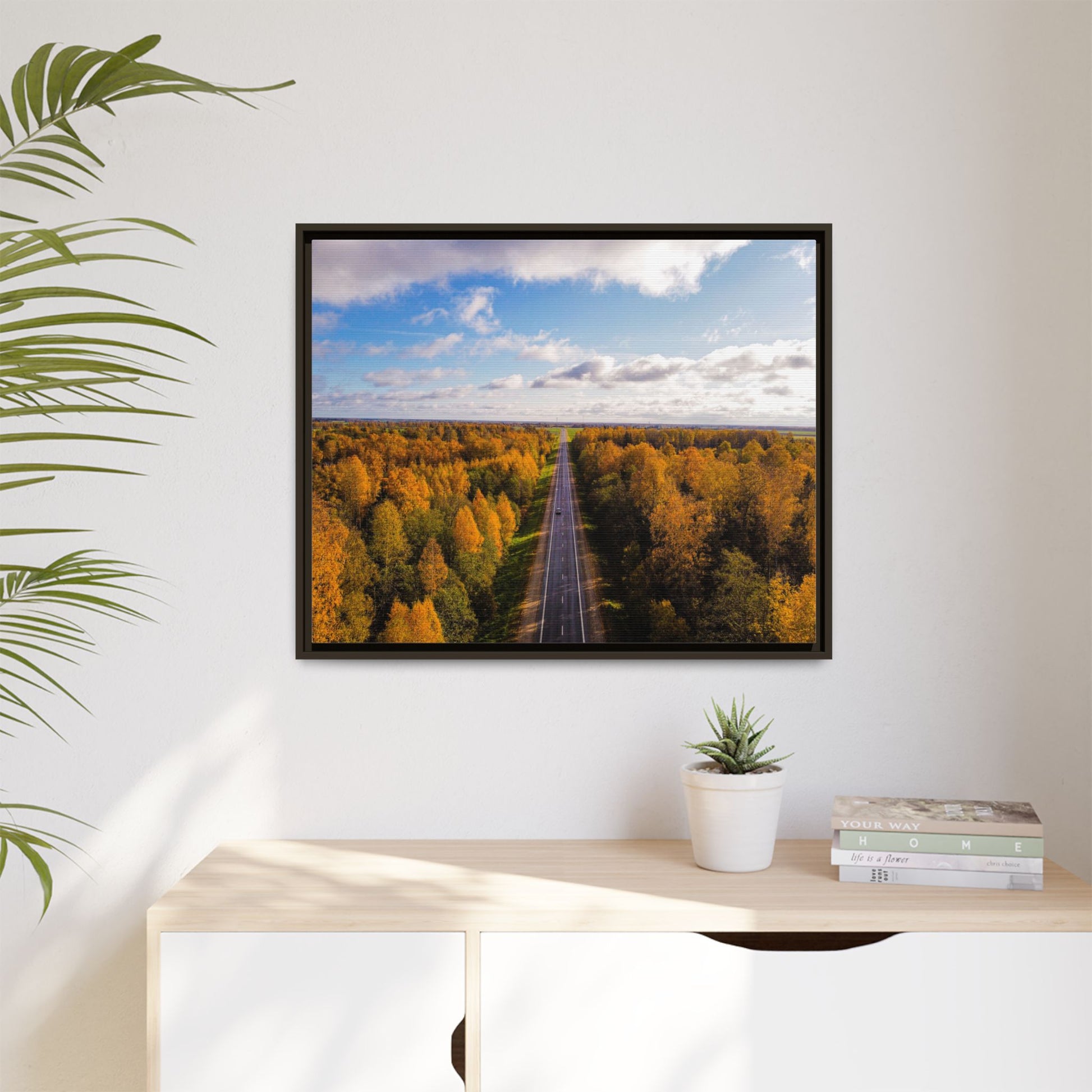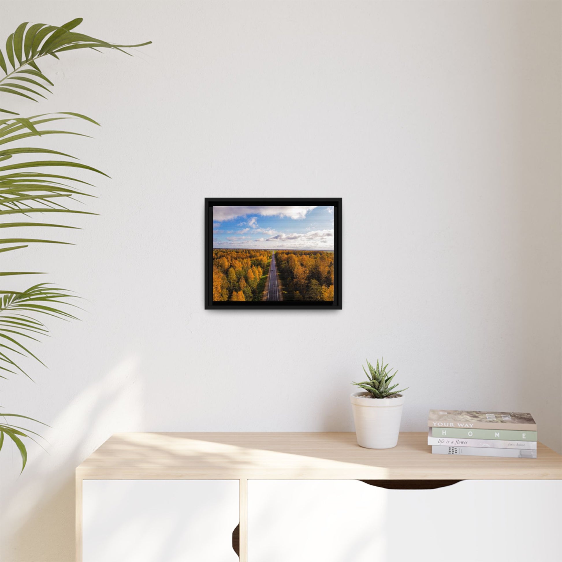 Enhance any interior space with beautiful art framed in a pinewood frame. Printed on a cotton-polyester canvas with a special proprietary coating to ensure long-lasting, vibrant colors and eye-catching detail. Made with sustainably sourced materials (Forest Stewardship Council certified), these frames are an eco-friendly choice. Choose between multiple sizes, and between 3 colors that matches your surroundings. The sawtooth hanging hardware is already attached.