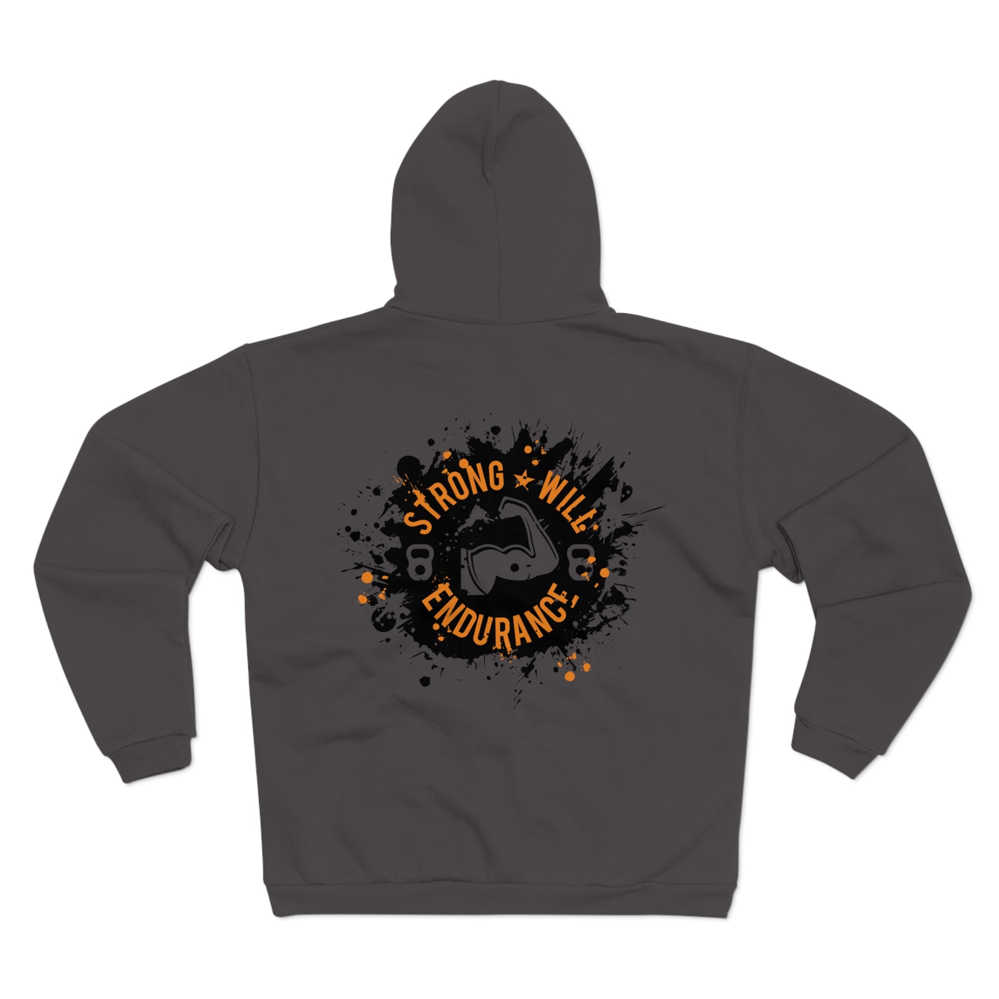 Strong Will Endurance Unisex Hooded Zip Sweatshirt - Motivational Fitness Apparel