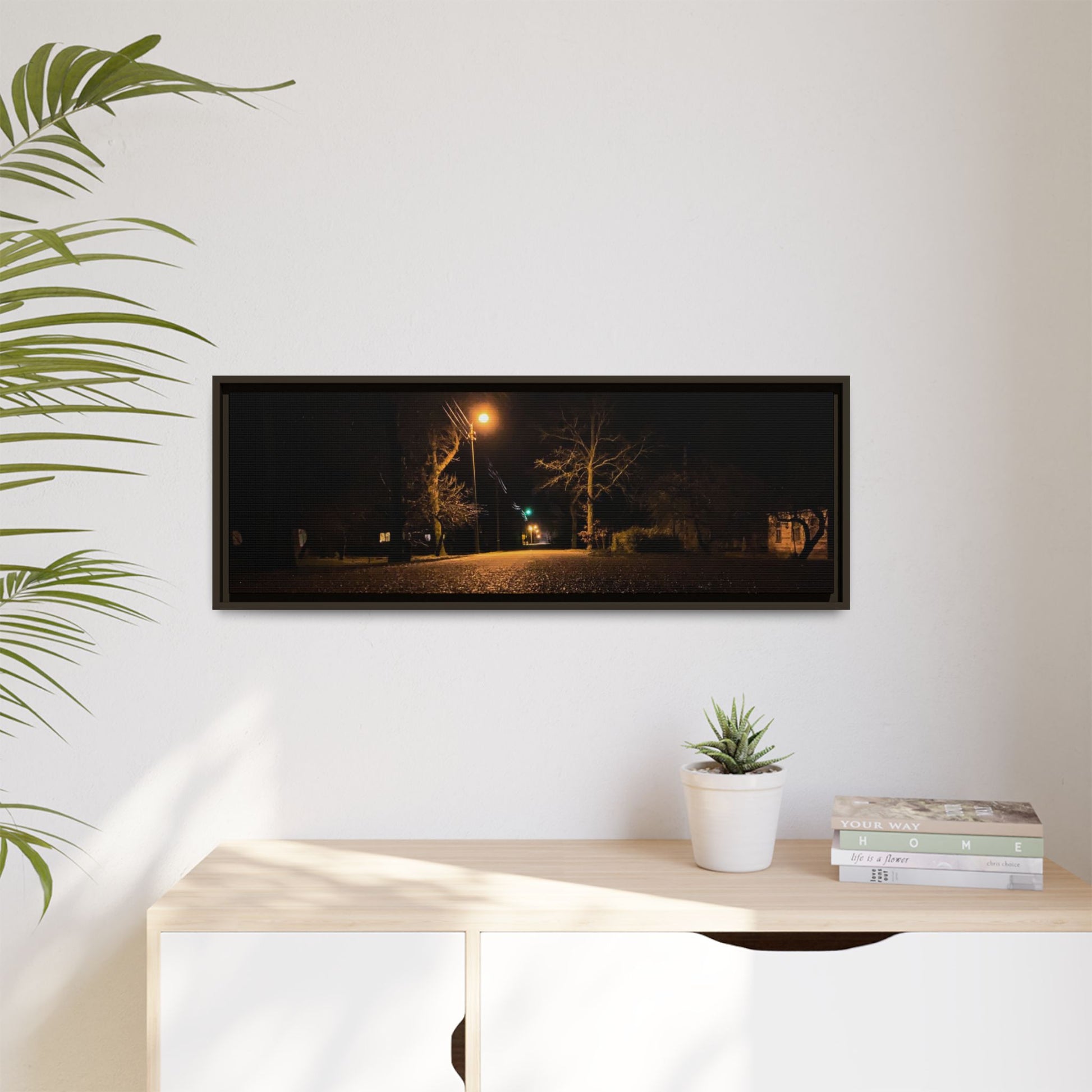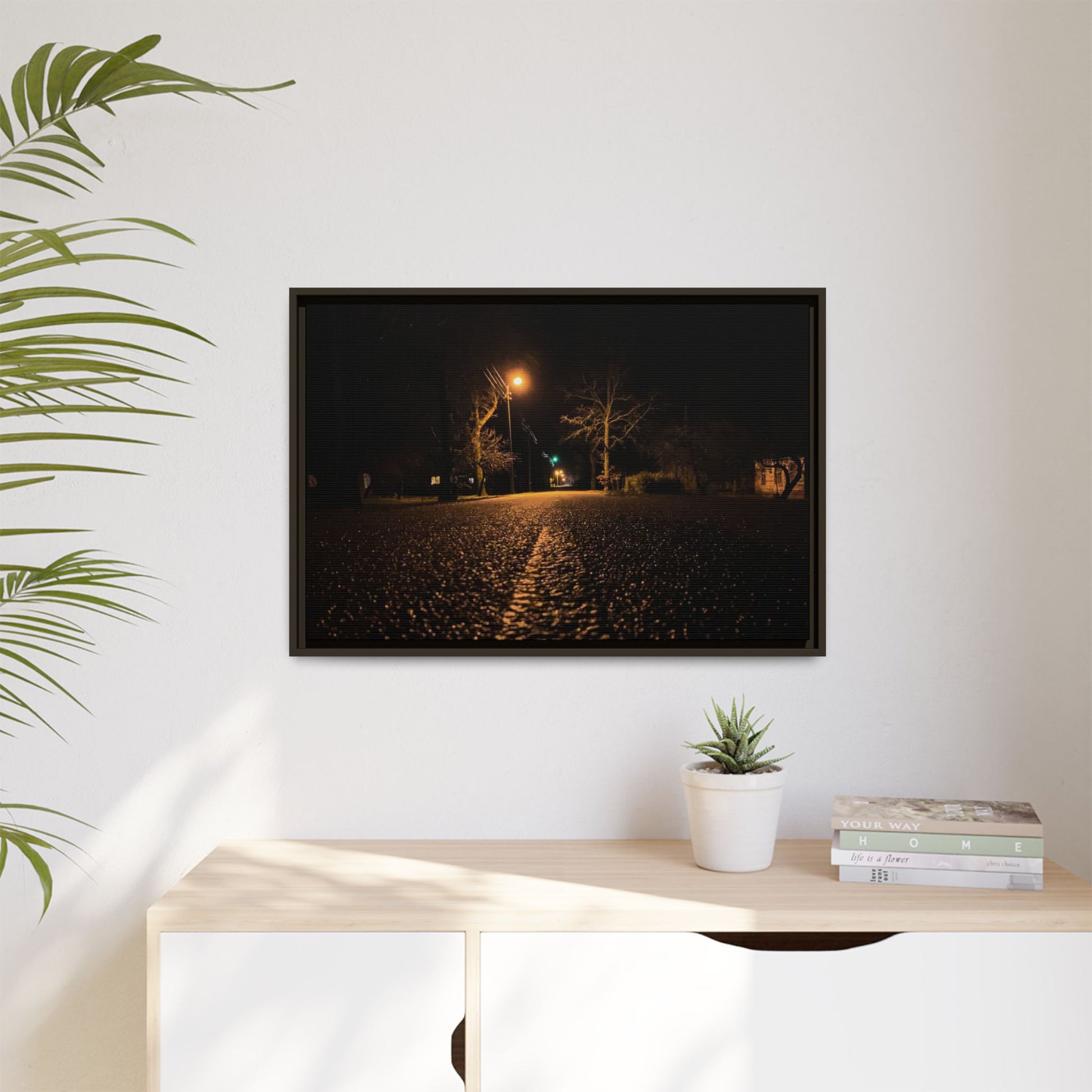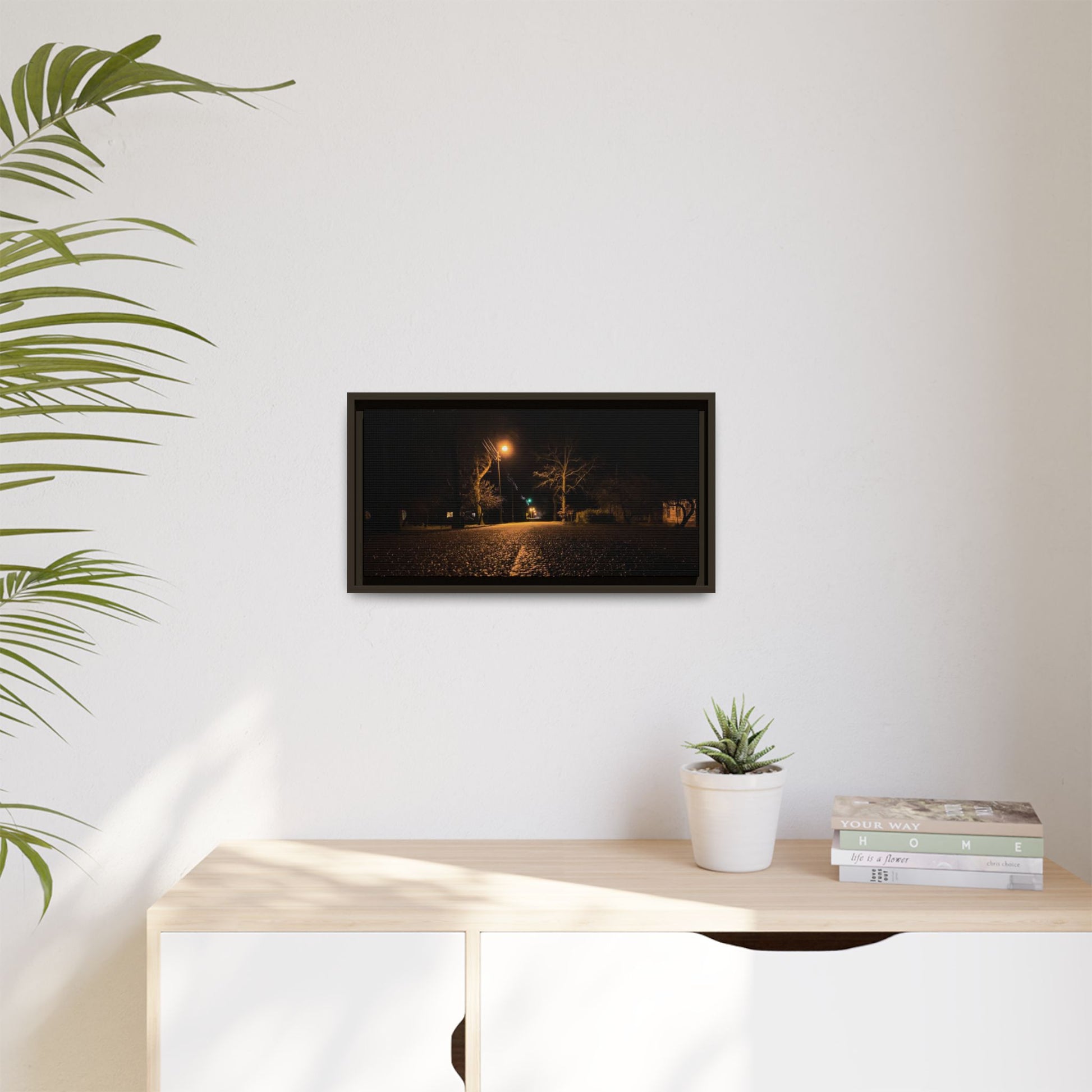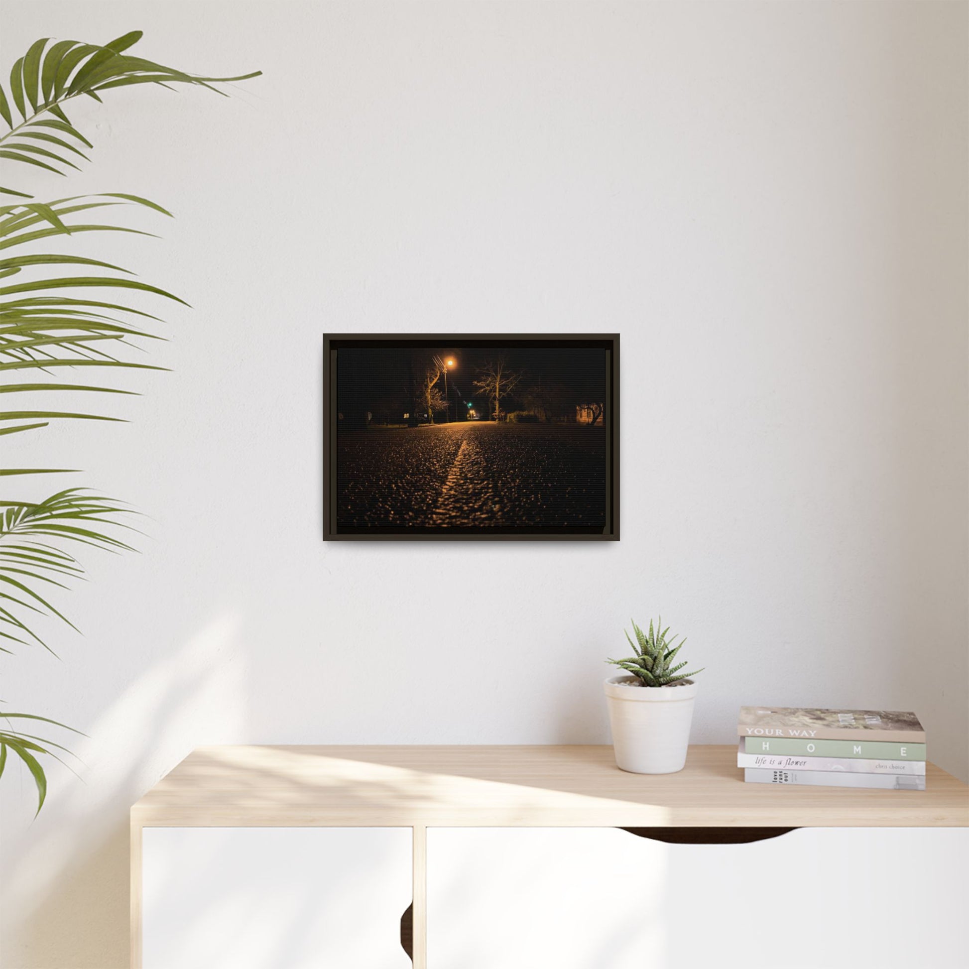 Enhance any interior space with beautiful art framed in a pinewood frame. Printed on a cotton-polyester canvas with a special proprietary coating to ensure long-lasting, vibrant colors and eye-catching detail. Made with sustainably sourced materials (Forest Stewardship Council certified), these frames are an eco-friendly choice. Choose between multiple sizes, and between 3 colors that matches your surroundings. The sawtooth hanging hardware is already attached.