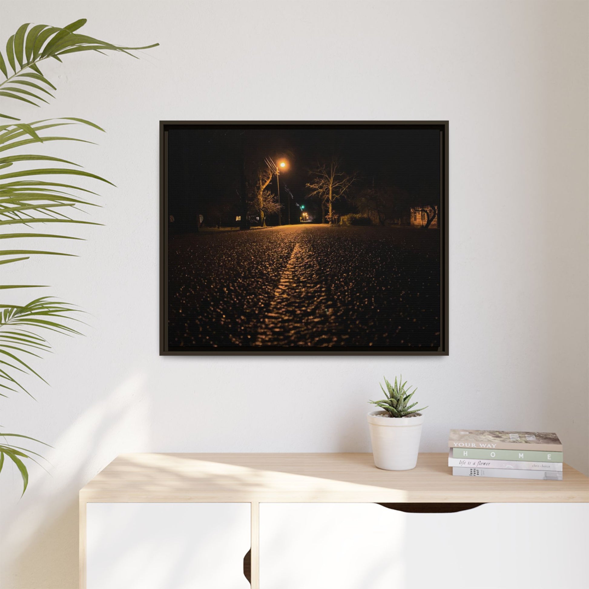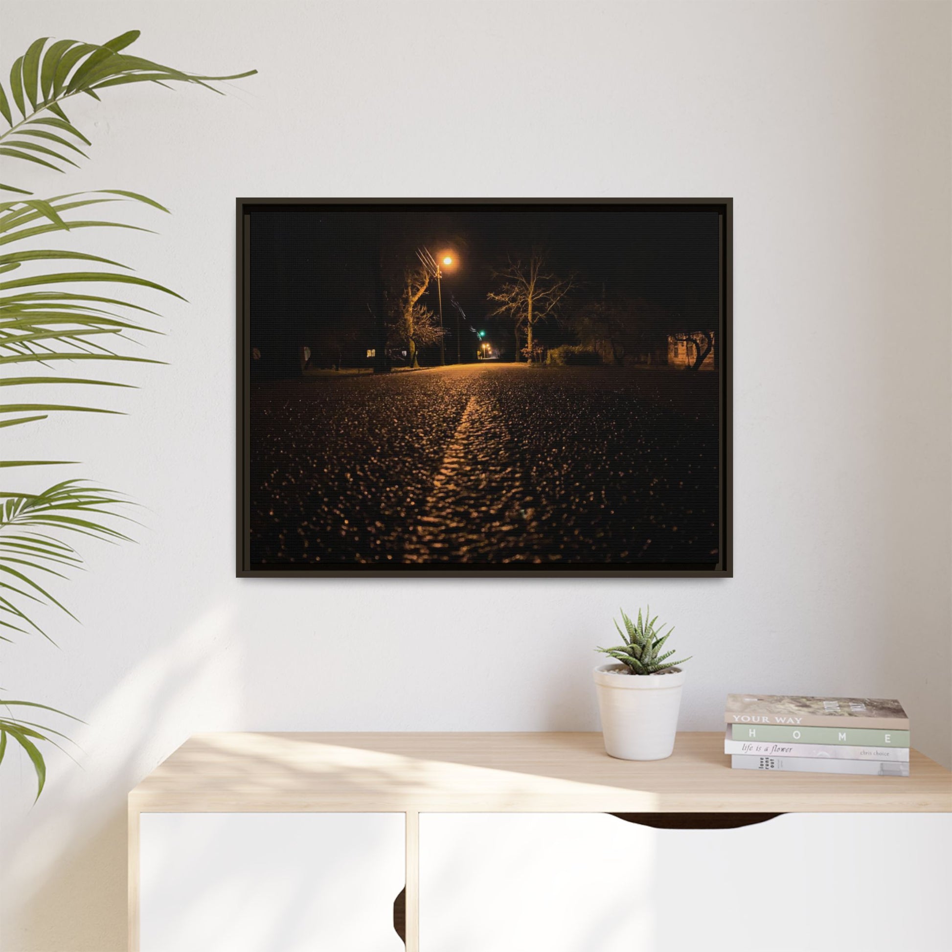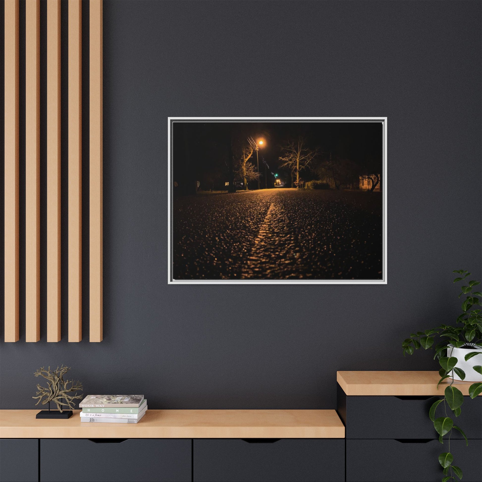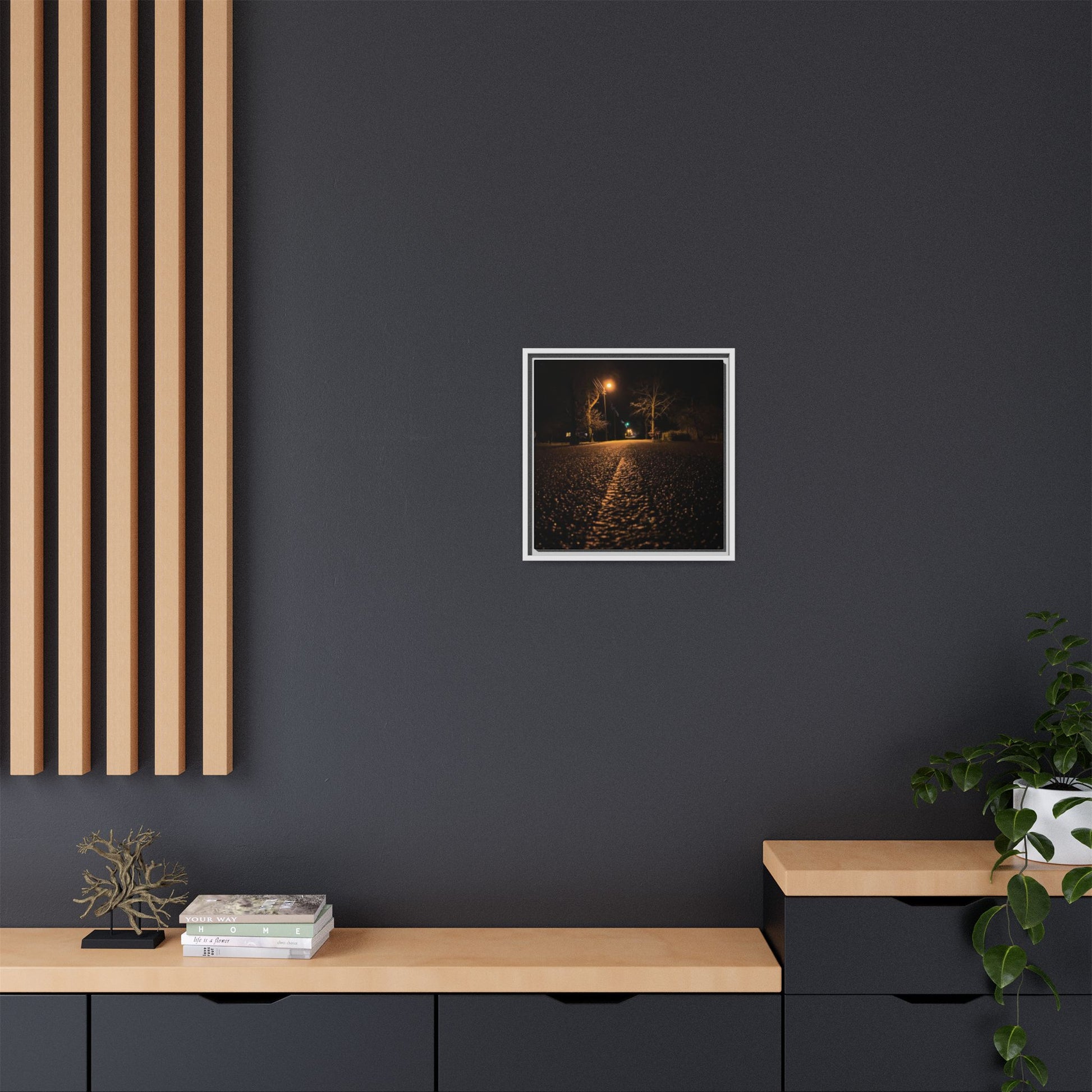 Enhance any interior space with beautiful art framed in a pinewood frame. Printed on a cotton-polyester canvas with a special proprietary coating to ensure long-lasting, vibrant colors and eye-catching detail. Made with sustainably sourced materials (Forest Stewardship Council certified), these frames are an eco-friendly choice. Choose between multiple sizes, and between 3 colors that matches your surroundings. The sawtooth hanging hardware is already attached.