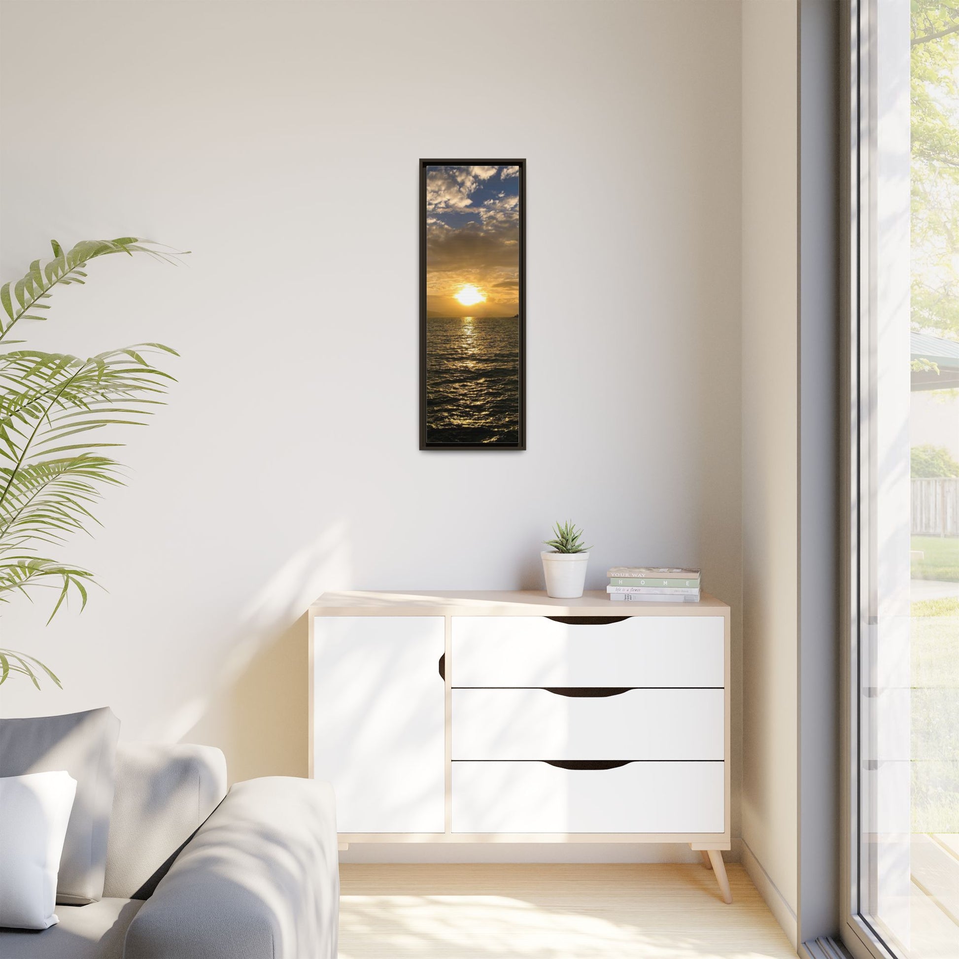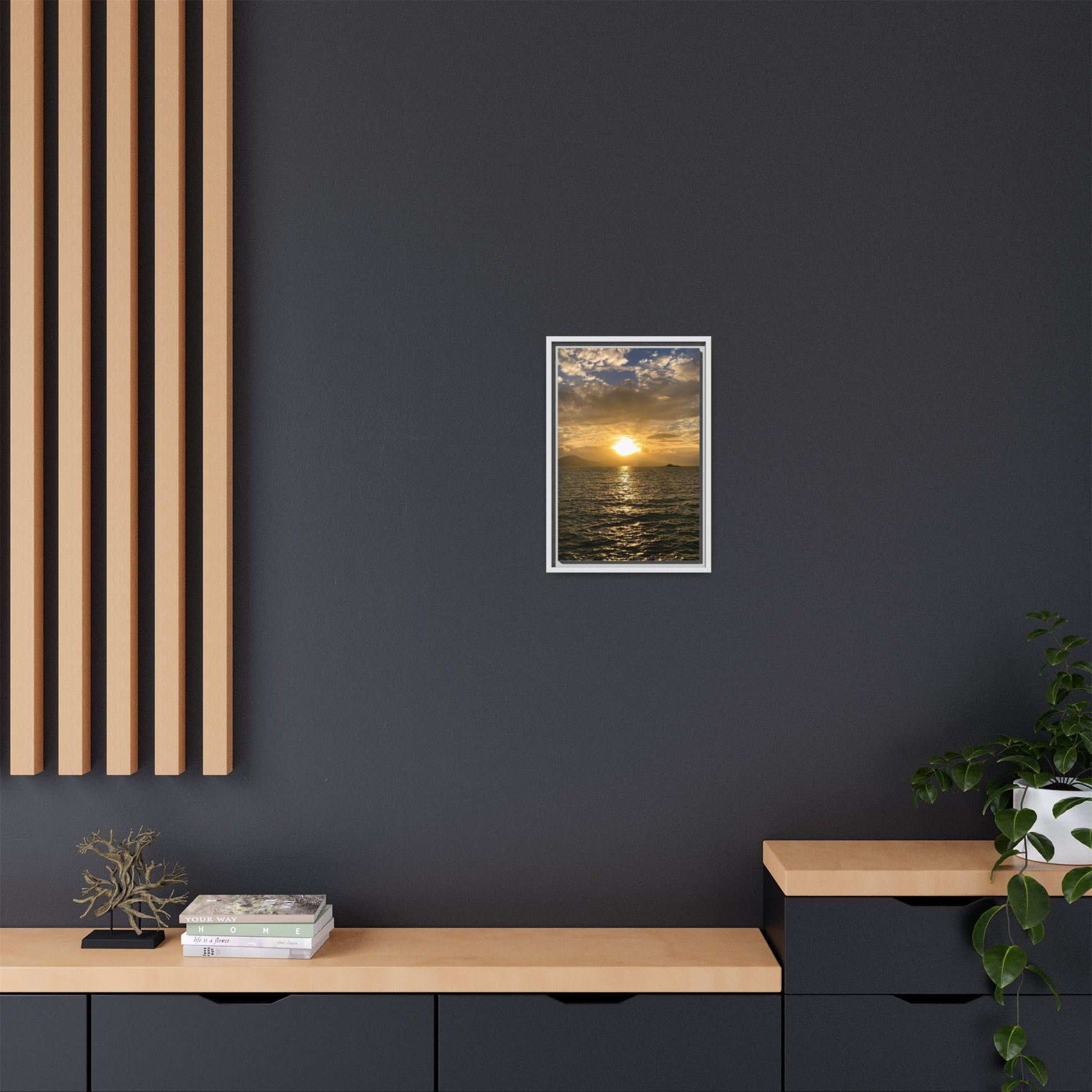 Enhance any interior space with beautiful art framed in a pinewood frame. Printed on a cotton-polyester canvas with a special proprietary coating to ensure long-lasting, vibrant colors and eye-catching detail. Made with sustainably sourced materials (Forest Stewardship Council certified), these frames are an eco-friendly choice. Choose between multiple sizes, and between 3 colors that matches your surroundings. The sawtooth hanging hardware is already attached.
